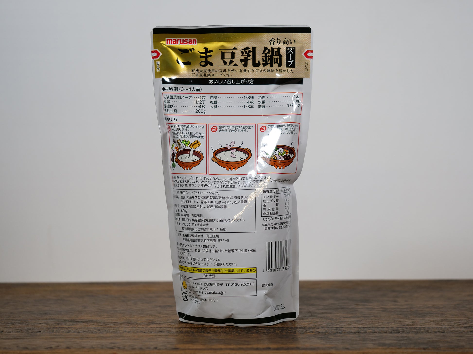 有機大豆使用の豆乳に有機ごまの風味を生かしたごま豆乳鍋スープです。